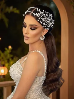 Ободок для волос блестящий со стразами и жемчугом объемный