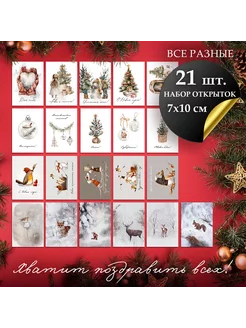 Новогодние мини открытки. Набор 21 шт. Все разные, 7х10 см