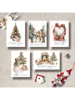 Набор Новогодних мини открыток "Милый дом". 5 шт