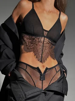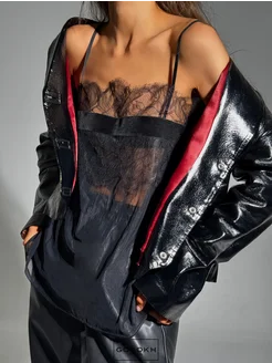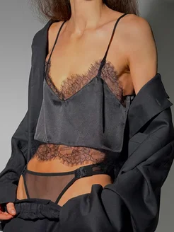 Топ атласный бельевой под пиджак, кружево