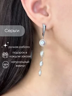 Серьги длинные с натуральным жемчугом