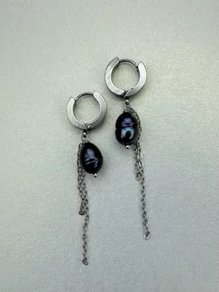 Серьги с натуральным черным жемчугом и цепочками