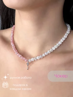 Чокер на шею украшение из бисера с кубическим цирконом