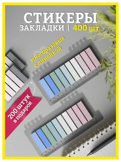 Стикеры закладки прозрачные с линейкой 2 + 2