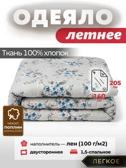 Одеяло Летнее хлопок, с наполнителем Лен, 1,5 спальное