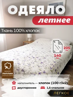 Одеяло Летнее хлопок 1.5 спальное облегченное 140х205 см