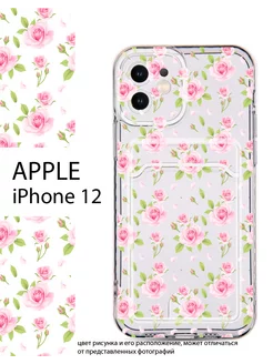 Прозрачный чехол на iPhone 12 с карманом и принтом