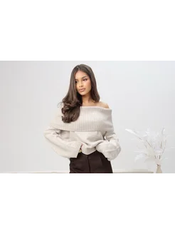 свитер женский вязаный оверсайз с открытыми плечами