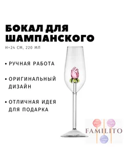 Бокал My heart для шампанского с розой