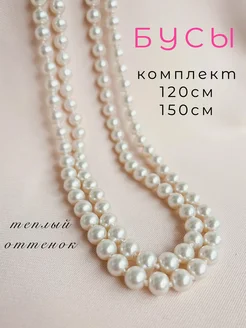 Бусы длинные 2шт. жемчужное ожерелье теплый оттенок