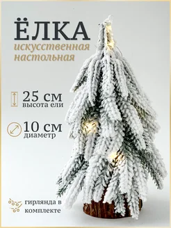 Елка искусственная заснеженная настольная с подсветкой 20 см