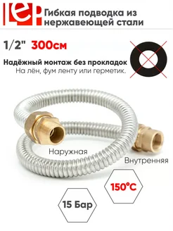 Гибкая подводка для воды 1 2" 300см наружная-внутренняя