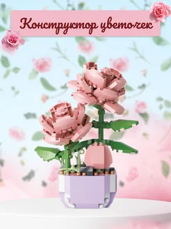 Конструктор 3Д Цветок Роза из миниблоков игрушка