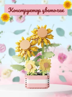 Конструктор 3Д Цветок Подсолнух из миниблоков игрушка