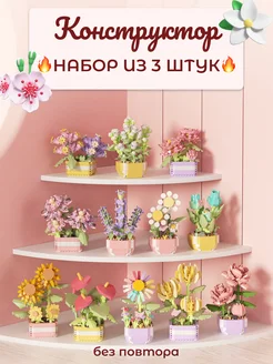 Конструктор 3Д Цветы из миниблоков игрушка Набор 3шт