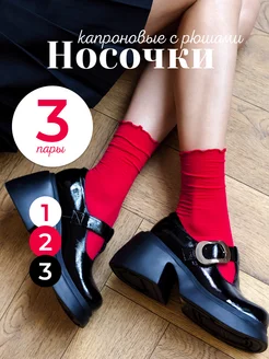 Носки капроновые с рюшами в рубчик - 3 пары (красный)