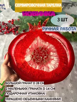 EpoxySIT Набор сервировочная тарелка гранат + 2 подставки