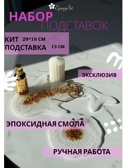 EpoxySIT Поднос декоративный белый с золотом + 2 подставки