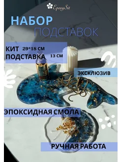 EpoxySIT Поднос декоративный синий с золотом + 2 подставки