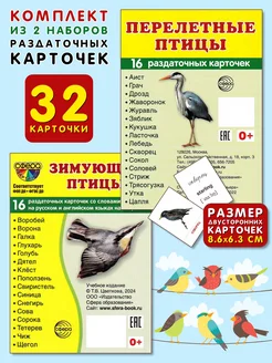 Зимующие и перелетные птицы. 2 набора раздаточных карточек