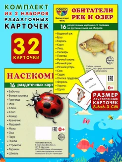 Насекомые + Обитатели рек и озер. 2 набора карточек
