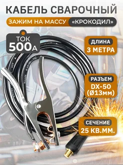 Кабель сварочный, зажим на массу WGC25500, 500А, 3м
