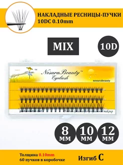 Накладные ресницы пучки многоразовые 10D C mix 8 10 12 mm