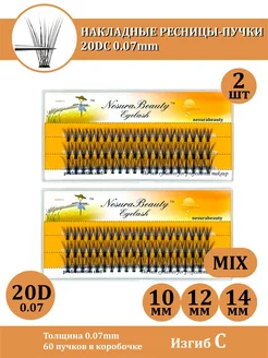Набор 2шт. Накладные ресницы пучки 20D 0.07 C mix 10 12 14mm