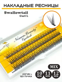 Накладные ресницы пучки Swallowtail MIX 10 11 12 мм, изгиб L