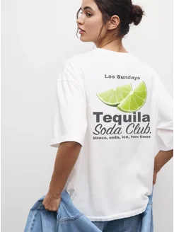 Футболка оверсайз летняя с лимонами со спущенным плечом