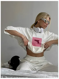 Футболка белая оверсайз gun с принтом