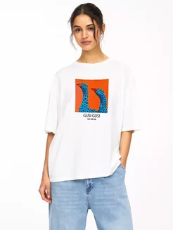 Футболка женская оверсайз летняя гуси леопард