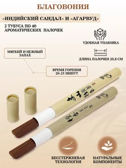 Благовония Индийский сандал Агарвуд, 2 тубуса по 40 палочек