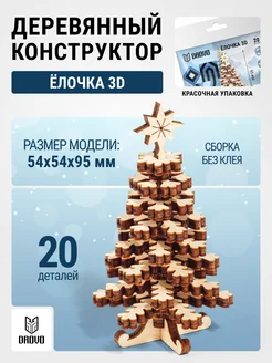 Деревянный конструктор Елочка 3D, маленькая, новый год