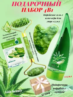Подарочный набор 4в1 скребок гуаша с гель алоэ