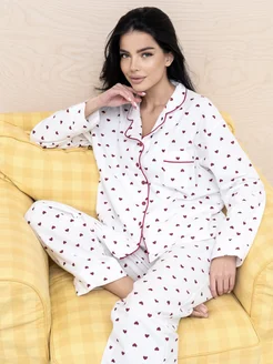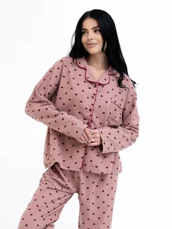 Теплая пижама со штанами и рубашкой с сердечками