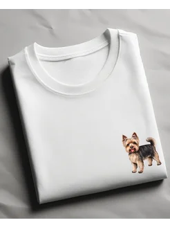 Футболка белая оверсайз с принтом собаки йоркширский терьер