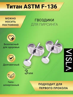 Серьги гвоздики из титана унисекс набор 2 шт