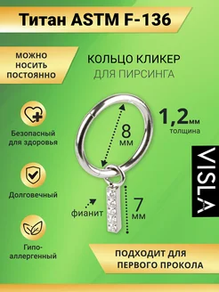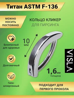 Пирсинг кольцо кликер в септум,нос,хрящ уха Титан