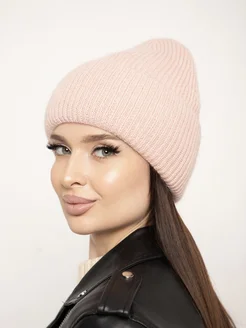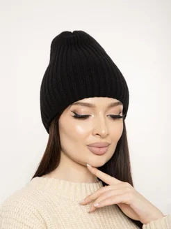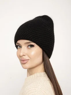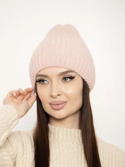 Шапка бини двойная в рубчик вязаная из ангоры Y2K