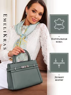 Сумка натуральная кожа оливково-зеленая с ручкой