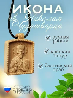 Иконка образок на шнурке Святого Николая Чудотворца из граба