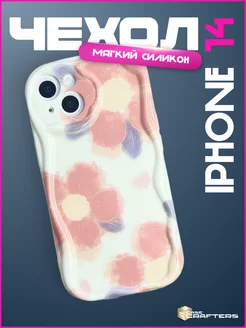 Силиконовый чехол на iPhone 13 и 14 белый бампер с принтом
