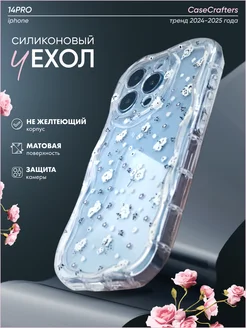 Силиконовый чехол на iphone 14 Pro прозрачный с цветами