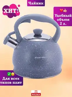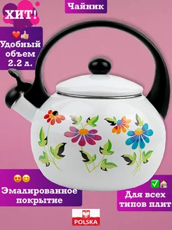 Эмалированный чайник для плиты со свистком посуда для дома