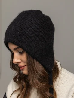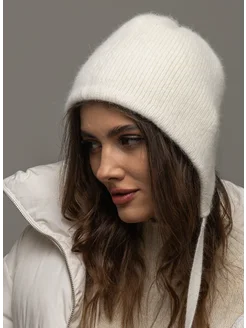 шапка женская чепчик на завязках из ангоры