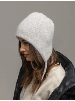 шапка шлем из пуха енота и ангоры зимняя