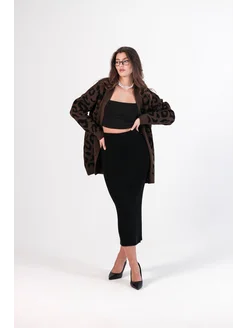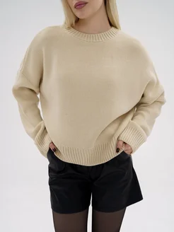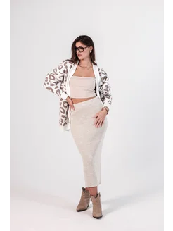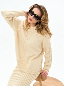 Костюм с юбкой бежевый оверсайз вязаный c косами