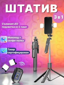 Штатив монопод для телефона с пультом и подсветкой 215 см