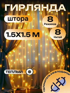 Гирлянда штора новогодняя 1.5*1.5 метра